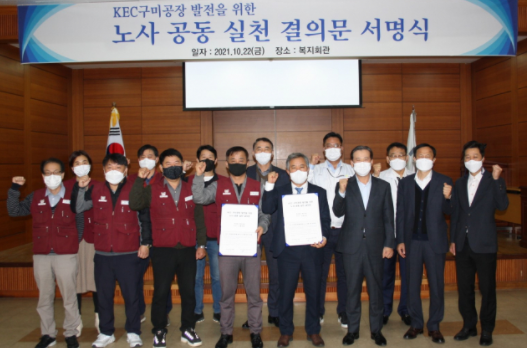 率先进驻龟尾工业园区的KEC投资200亿韩元实现“第二次飞跃”(株)KEC创立52年,发布旨在持续发展的劳资共同实践决议书率先进驻龟尾国家工业园区的企业(株)KEC投资200亿韩元等实现第二次飞跃,从而大受瞩目。KEC代表金学南(音)和工会委员长李准韩(音)等高管10月22日在龟尾工厂举行劳资共同实践决议书签字仪式,为实现“KEC集团愿景2025”,表明了劳资和谐及积极推进的意志。这次(株)KEC实现第二次飞跃的宣言,源自2年前迎来公司创立50周年时,KEC集团宣布的内含跃升为未来型自动化工业全球电力芯片企业等核心价值的“愿景2025”。当天的实践决议书内容包括▷为实现龟尾工厂的持续发展和雇佣稳定,在生产设备领域新增投资200亿韩元,并讨论进行持续投资▷通过劳资和谐,在筹备未来和强化竞争力方面开展积极合作等。KEC作为非存储综合芯片企业,近期在KEC集团“愿景2025”的指导下,正在为跃升为全球电力芯片企业而实行从研究开发到流通的综合成长战略。KEC拥有作为电力芯片核心的发动机驱动变频器效率提升技术、作为变频器核心构成原件的电力芯片制造技术等。KEC1969年起进驻龟尾产业园区,2000年之前的年销售额为4千500多亿韩元,员工人数最高多达3千多人,10年前遭遇了宣布进入紧急经营状态的严重经营困难后,最近保持着2千200多亿韩元的年销售额和650多名员工的规模。